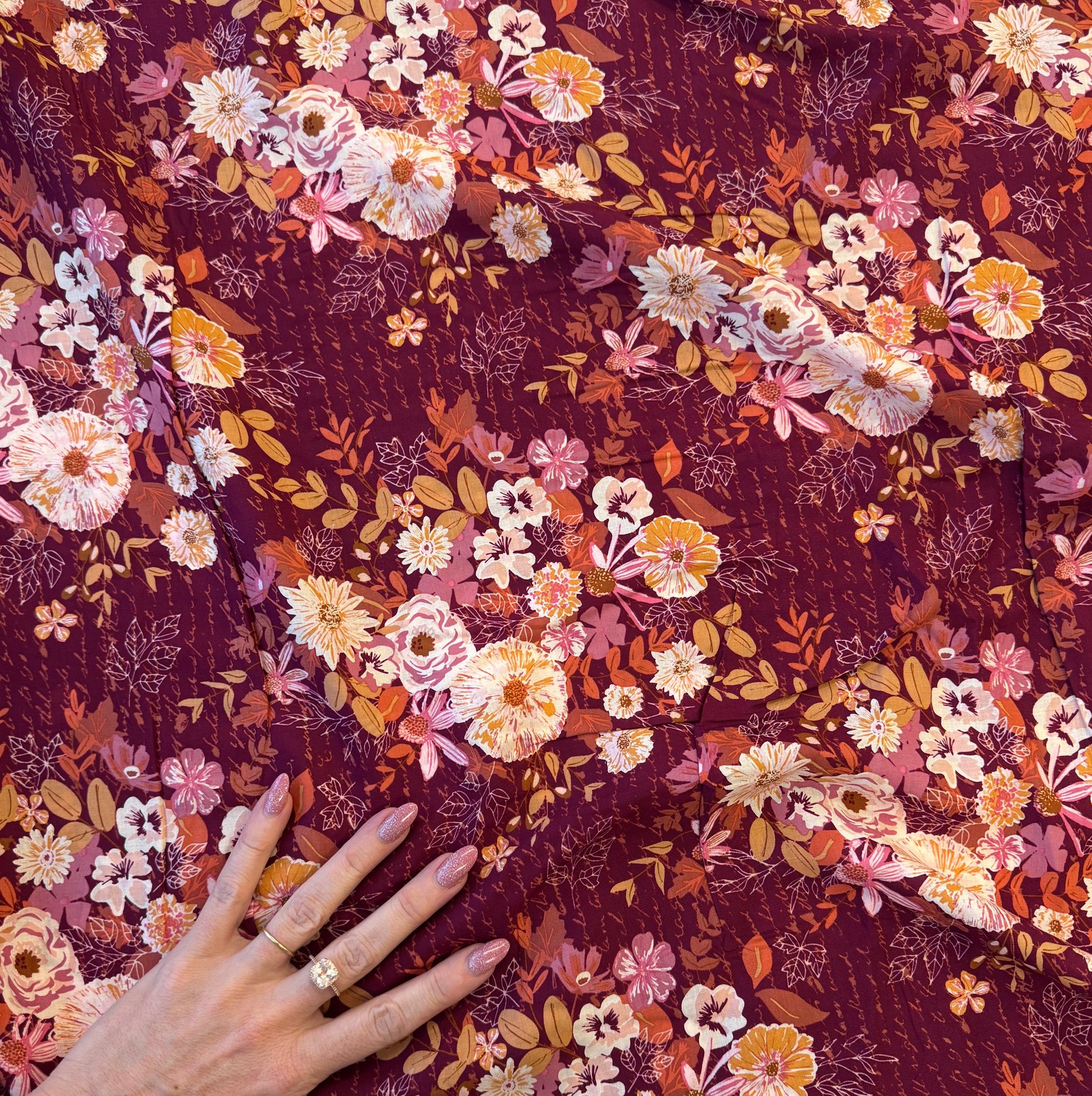 Per yard - rayon from Art Gallery Fabrics. SO lucious!! Perfect for the Jill Tunic, Ogden Cami, Ethel pants, the Style-Arc cover-up robe, and more.