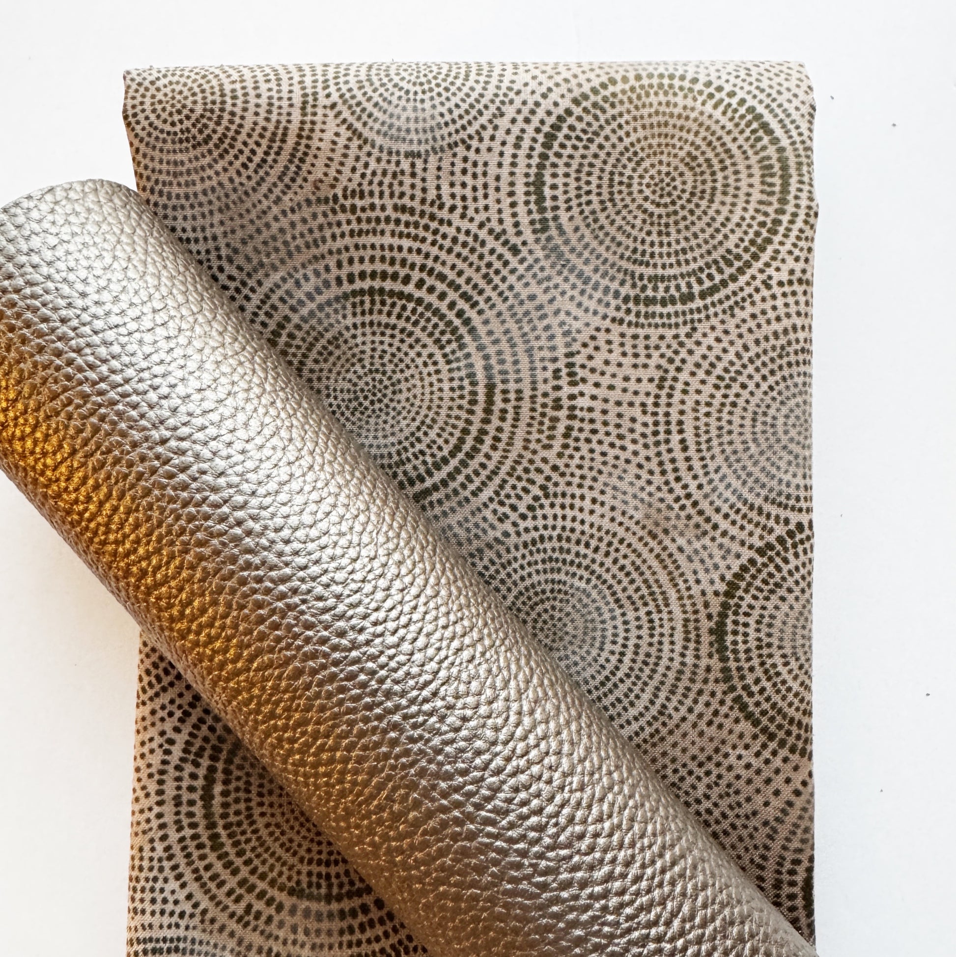 This Friday matchup includes our super popular Moonglow Vinyl in taupe with a perfectly matching taupe radiance fabric yard.