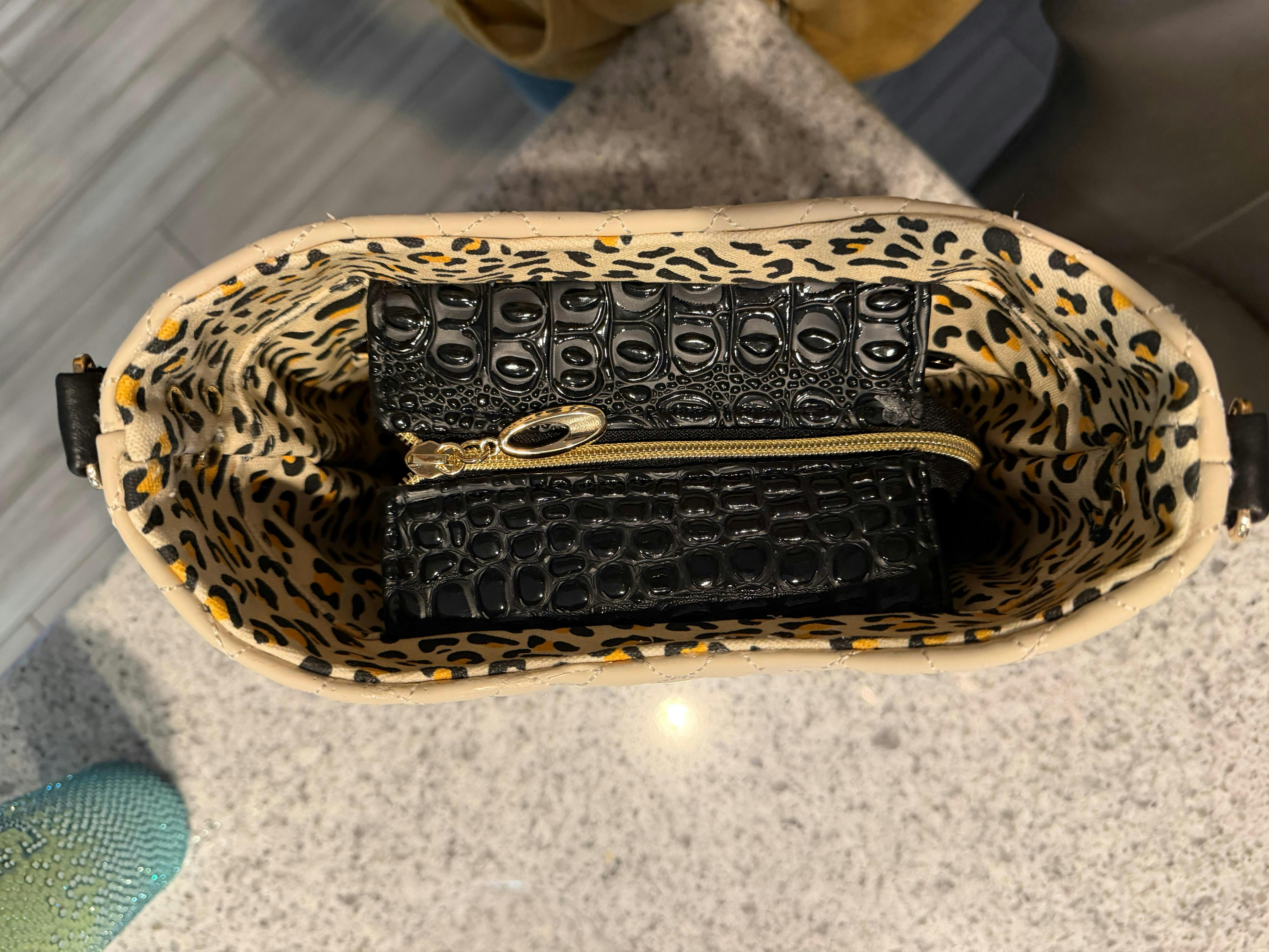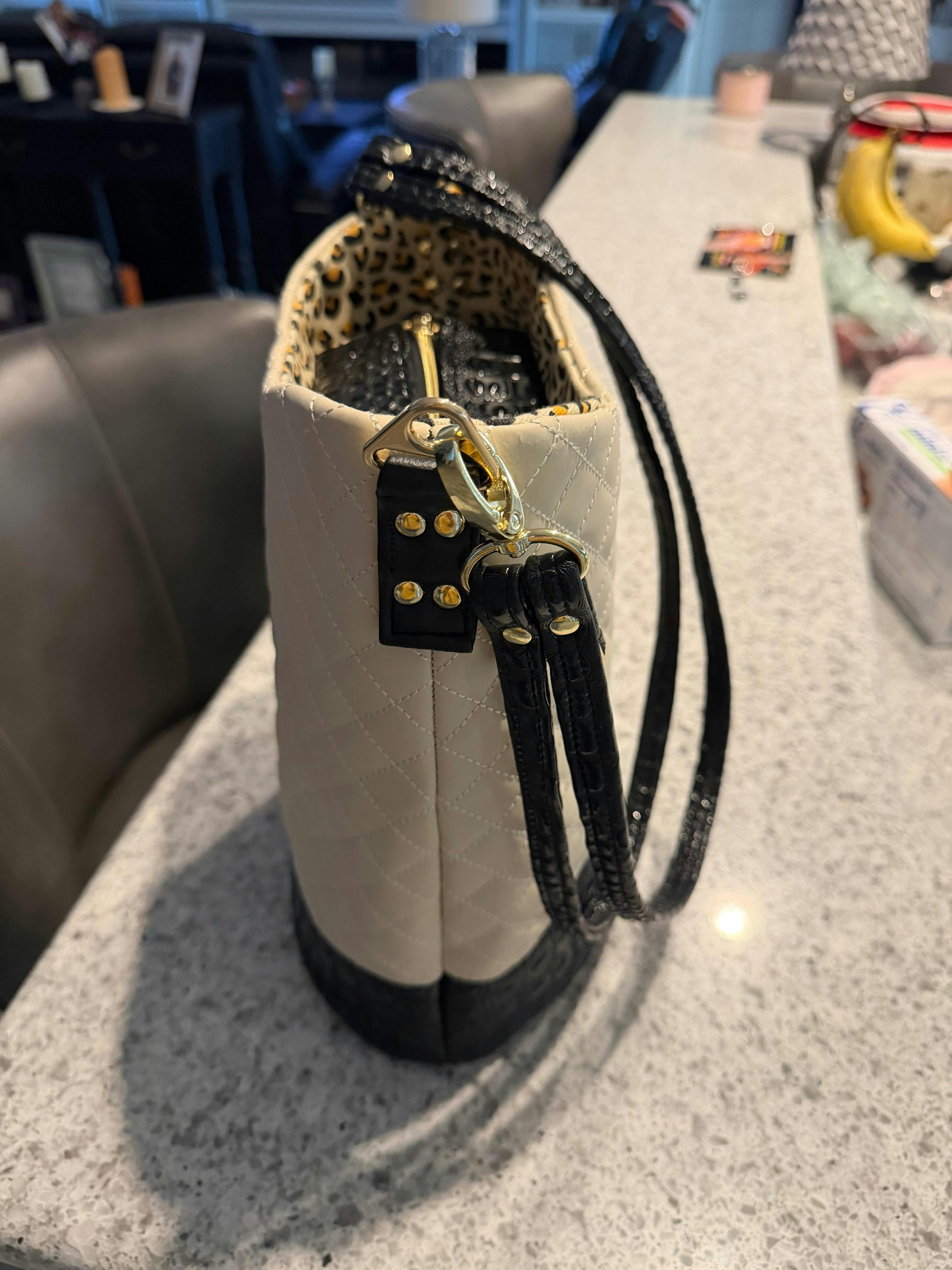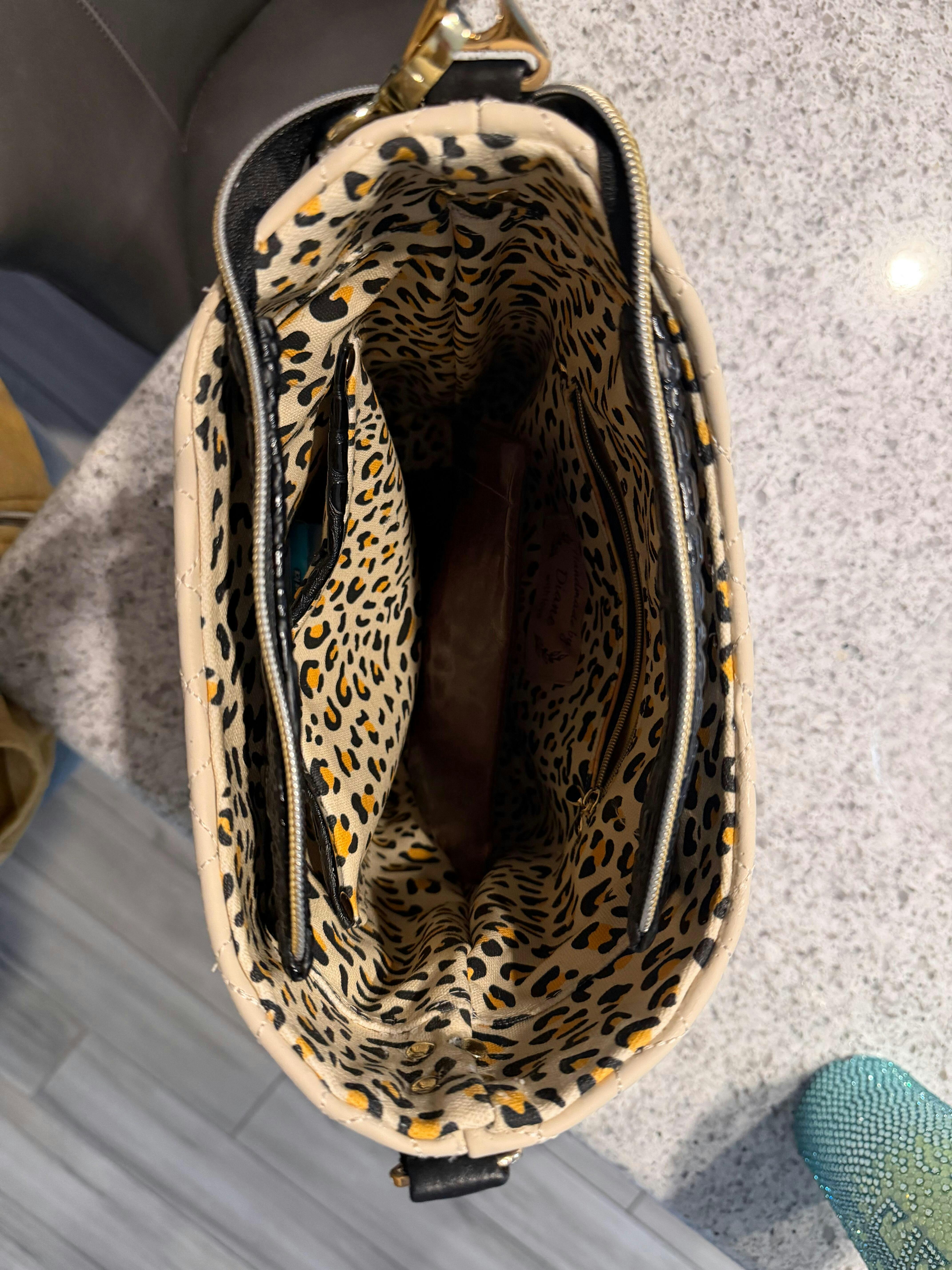 Leopard Canvas and Quilted Beige Vinyl Matchup